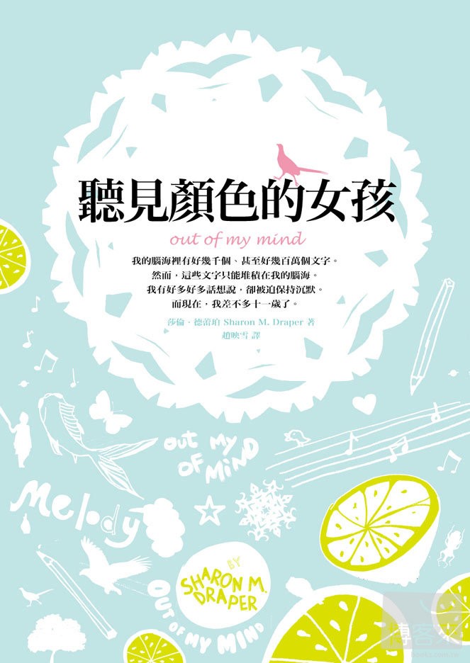 書名: 聽見顏色的女孩 對於腦性麻痺,你知道多少?當在街上看見腦性麻痺患者我們通常都投以同情的眼光,但是你又怎麼看待他們?「我的腦海裡有好幾千個、甚至好幾百萬個文字。然而,這些文字只能堆積在我的腦海。我有好多好多話想說,卻被迫保持沉默。而現在我差不多十一歲了。」玫樂娣這麼說。一個正要起跑的人生要怎麼衝破這腦中的聲音。這本書由玫樂娣為自己發聲,她只是四肢被侷限著了,她的思想並沒有被關住,她的智力甚至高過一般人很多,但你能否認你沒有在知道她是腦性麻痺後輕看她?這大概就是我們的通病,總在疾病身上看見階級,卻不願意先看看自己,讓疾病成為不平等的天平,無論是對自己,還是對別人。 |