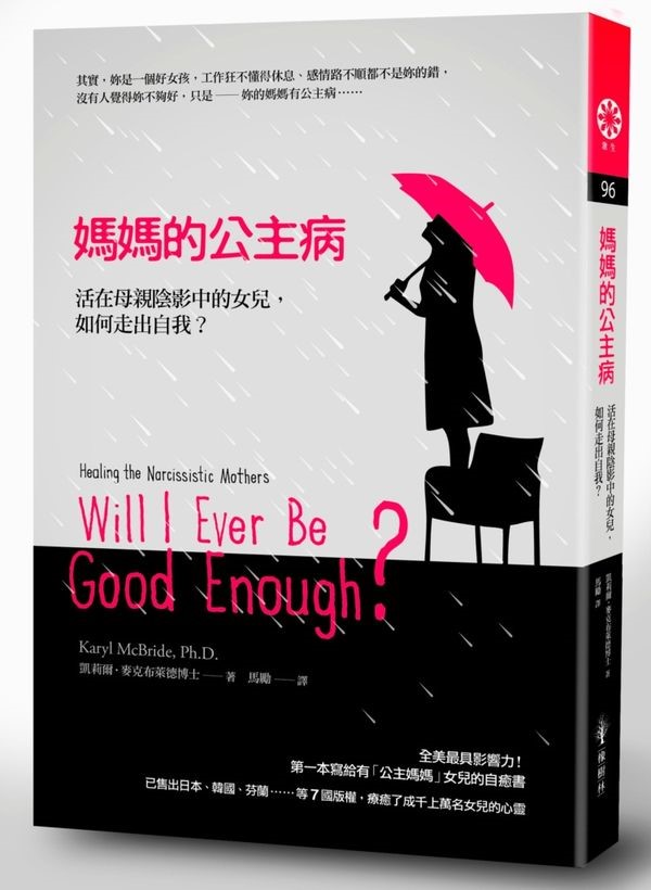 書名:媽媽的公主病 活在母親陰影中的女兒,如何走出自我人 常常媽媽都是和小孩最親近的人,我自己也不例外,我總會想跟媽媽分享我生活中的事,無論是校園中發生的趣事、考試的挫折、課業上的壓力,或是未來的規劃,這些總是第一時間先找媽媽商量,而媽媽也會用比較多的經歷分享她的看法,適時的給我意見,也在每個重要的時刻參與我,比起爸爸,我們好像都和媽媽比較像是朋友。我沒有想過媽媽會從這個重要角色中下戲,如果哪天我和媽媽滿臉喜悅的分享時,她只是不斷的批評我,並斥責我,我想我的生活會少了很大一個重心,甚至我的人格養成也許就不會像現在一樣,但是翻開這本書後,我才瞭解到有這種類型的媽媽─自戀型母親。 作者是心理學專家,她投入許多心力在自戀型父母的小孩的治療工作上,我覺得這本書很棒的一件事是:她一邊以專家的角度了解,另一邊更是以過來人的立場對讀者解析自己身為自戀型父母的之小孩的心路歷程,我想應該沒有人能比她更瞭解了。她因為身處過那樣的環境,所以希望讀者能從書裡找到力量,也許有些情況相同的讀者不敢或不知道去尋求資源,那看完這本書可能可以從中得到自我療癒,每個人都有自我的價值,父母親即使再親密、再怎麼像朋友都無法貶低或否認你存在的價值,這是我堅信的,因為你的存在就是一件有價值的事。 |