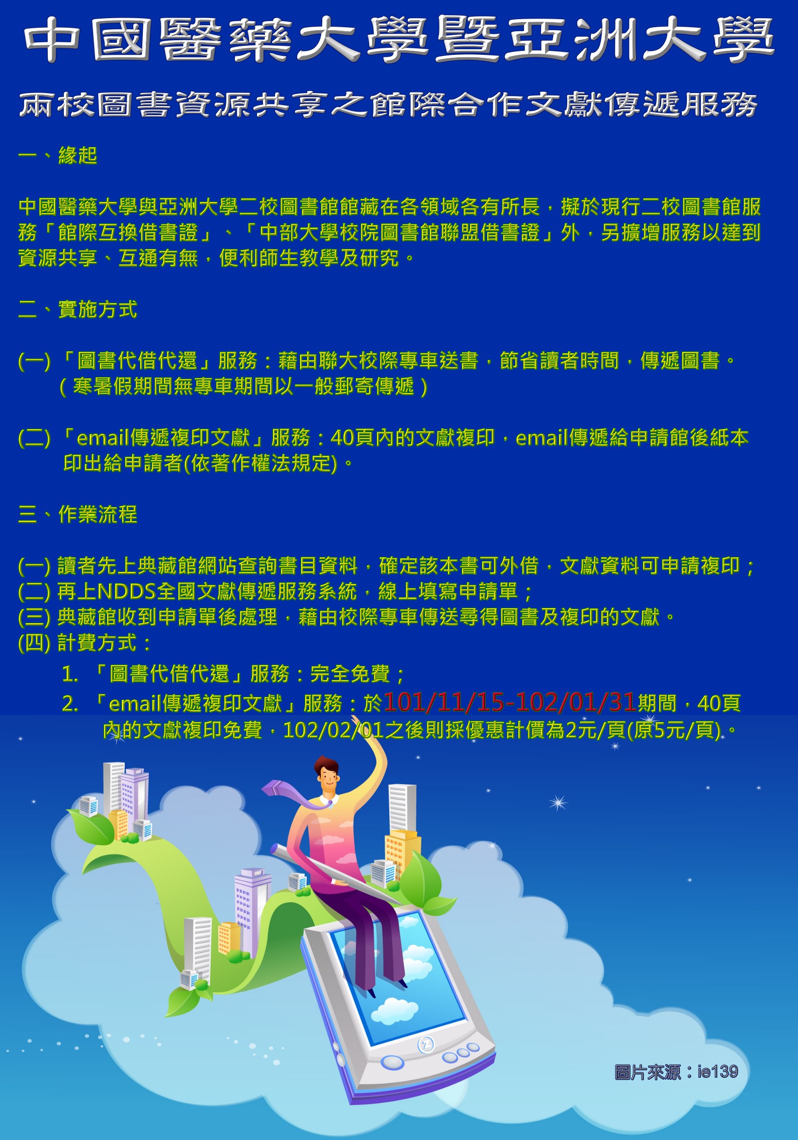 中國醫藥大學暨亞洲大學圖書資源共享-圖書代借代還暨文獻複印服務