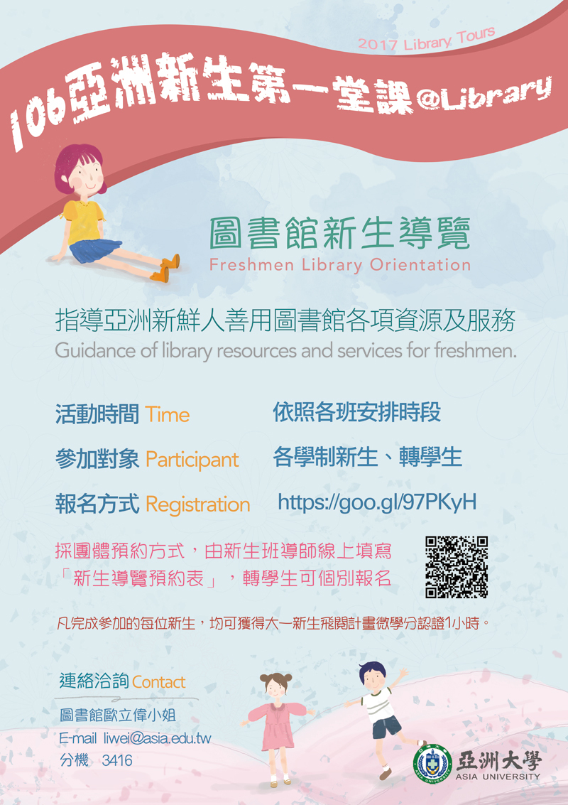 圖書館將針對新生舉辦圖書館導覽活動,活動期間為2017/9/18~11/5