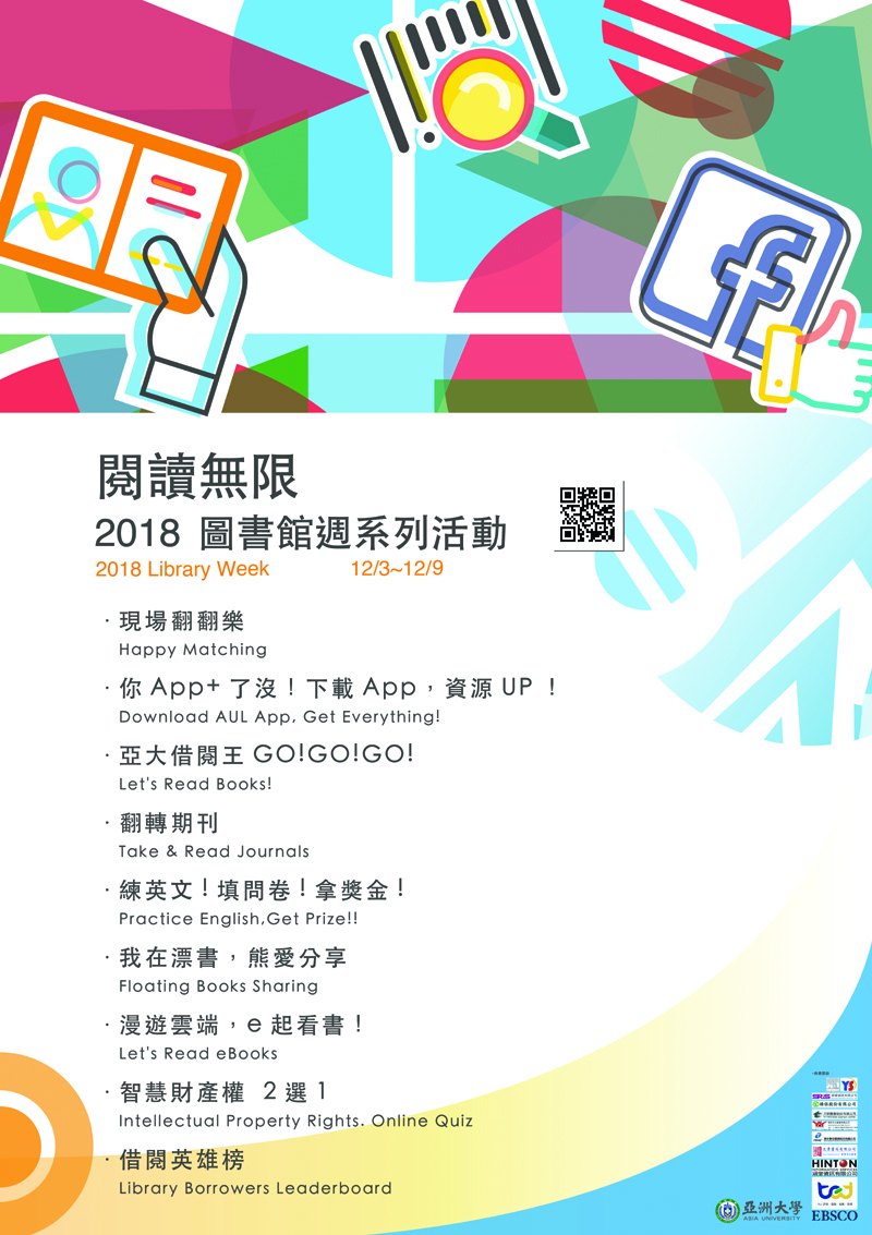 今天您APP了沒~2018 圖書館週系列活動! 2018-11-27 asialib 圖書館於 12/3~12/9 舉辦圖書館週系列活動,歡迎大家一起來參加! 活動網頁:http://bit.ly/2OYAhdA