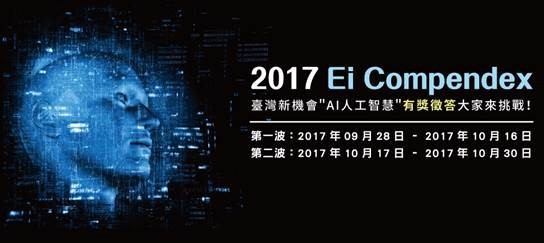最熱門話題AI人工智慧,大家知多少呢?即日起至2017/10/30止, 參加「臺灣新機會AI人工智慧」有獎徵答活動,利用Ei Compendex資料庫查找, 大家一起來動動腦、拿好獎! 2017-10-02 最熱門話題AI人工智慧,大家知多少呢?即日起至2017/10/30止, 參加「臺灣新機會AI人工智慧」有獎徵答活動,利用Ei Compendex資料庫查找, 大家一起來動動腦、拿好獎!