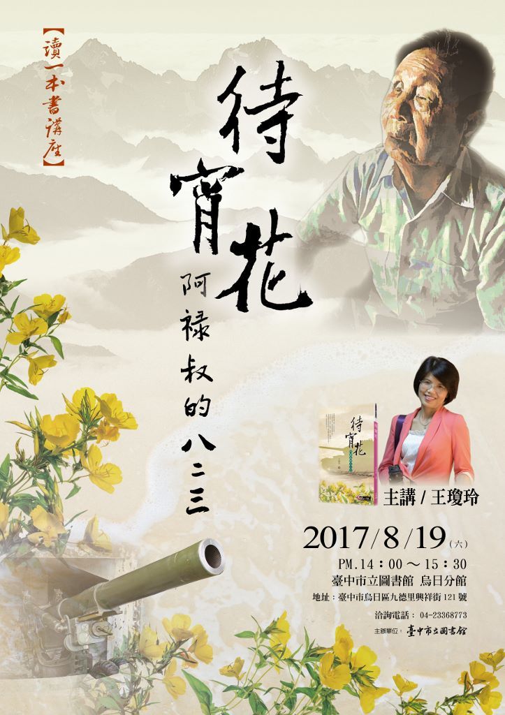 二、第二場講座邀請學者作家王瓊玲分享「寫演人生—從待宵花說起」,訴說著最慘烈的戰爭,最堅忍的精神,最動人的真情,讓最會說故事的王瓊玲,說給大家聽!