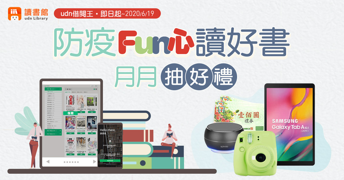 【抽獎】月月抽好禮!即日起至2020/6/19止,參加2020 udn借閱王「防疫Fun心讀好書」活動,有機會把無線藍牙讀卡喇叭等豐富好禮帶回家喔!