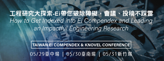 【研討會】2019/5/29由Elsevier B.V於中興大學舉辦「工程研究大探索-Ei帶你破除障礙,會議、投稿不踩雷」研討會,歡迎師生報名參加! 2019-05-24 為提高工程研究人員利用Ei Compendex創造高效能高品質之工程研究,以及增進期刊論文投稿效能, 由Elsevier B.V主辦「工程研究大探索-Ei帶你破除障礙,會議、投稿不踩雷」研討會, 藉此會議邀請出版社解密Ei Compendex收錄標準,幫助研究人員如何投稿期刊; 邀請國內知名學者分享如何利用Ei Compendex 與 Knovel 創造高效能高品質之工程研究, 期望與會者無論在學術上或實務上都能有所助益。