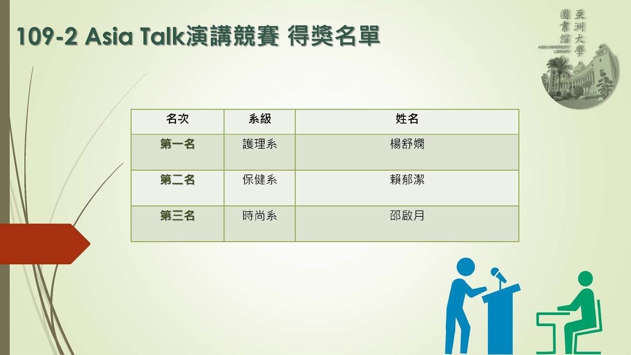【Asia Talk】109-2 Asia Talk得獎名單