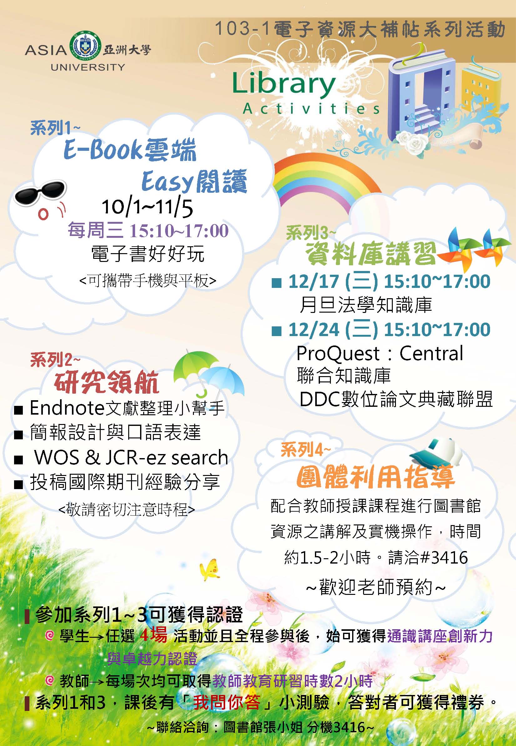 課程內容豐富,系列1~3任選4場課程可獲通識認證,也有機會獲得禮券喔!歡迎約伴踴躍報名。