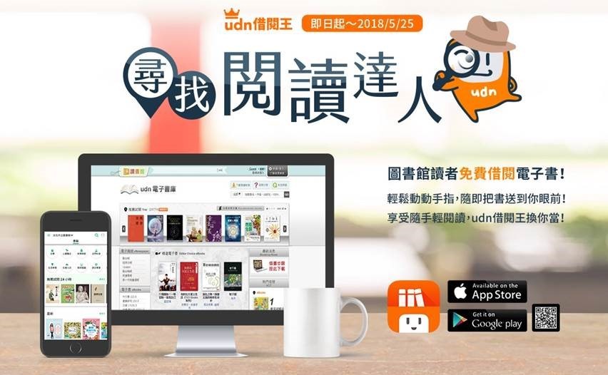 2018年【udn借閱王.尋找閱讀達人獎好禮】享受閱讀零時差,電子書刊免費暢讀!! 2018-04-10 即日起至2018/5/25止,參加「udn借閱王.尋找閱讀達人獎好禮」活動, 登入“行動借閱帳號”進行借閱,就有機會將iPad等好禮帶回家~