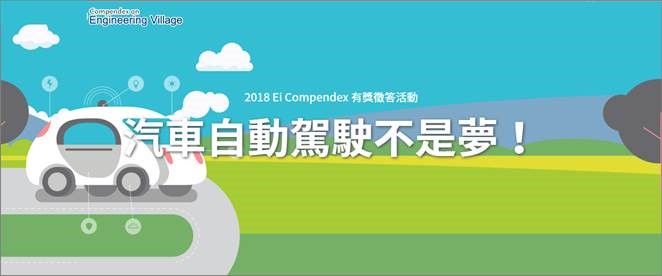 2018 Ei Compendex 有獎徵答活動,抽電影票喔! 2018-10-02 即日起至2018/10/31止,參加「汽車自動駕駛不是夢!」有獎徵答活動, 利用Ei Compendex資料庫查找及答題全對者即可參加抽獎!